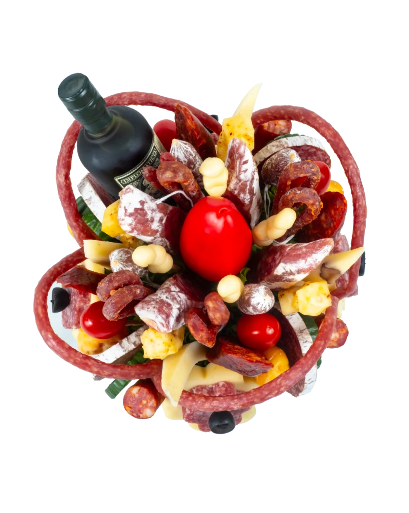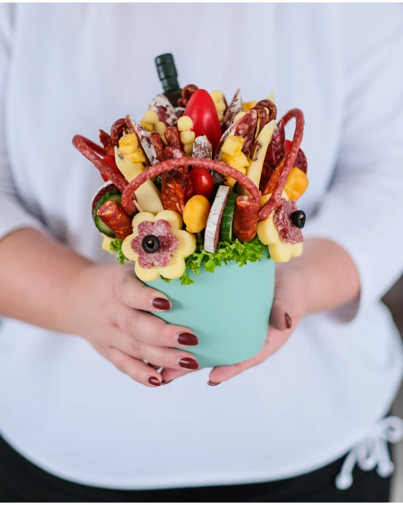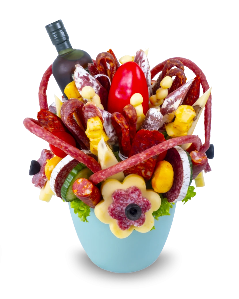 Ein herzhafter Strauß aus Käse und Wurstwaren ist ein originelles essbares Geschenk für Liebhaber kräftiger Aromen. Die handarrangierte Kombination aus hochwertigen Käsesorten, luftgetrockneten Wurstwaren, Gemüse, Kräutern und einer kleinen Flasche Rum begeistert als Geschenk für Männer ebenso wie als unkonventionelle Alternative zum klassischen Blumenstrauß für Frauen.