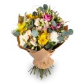 Zutaten: Inkalilien, Wildrosen, Veronika, Eukalyptus, Eustoma, Nelke, Chamelaucium