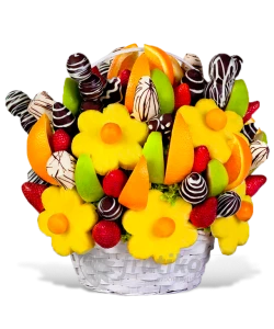 Juicy Flower Juicy flower represents an irresistible combination of delicious fresh strawberries and apple in chocolate. Red and green fruit flow...