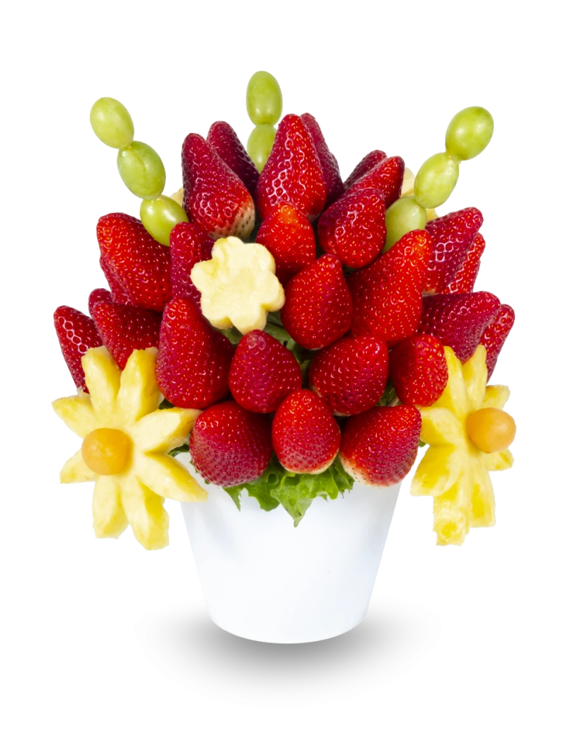 Strawberry flower is created from the freshest and sweetest strawberries. Fresh strawberries and pineapple daisies arranged into a beautiful bouquet which will surprise lucky receiver . Strawberry flower is sweet present which has beautiful appearance.Original and healthy gift full of vitamins is ideal as a surprise for boyfriend / girlfriend on birthday, Valentine and other important events. If you love strawberry and chocolate combination you can order chocolate strawberry flower.