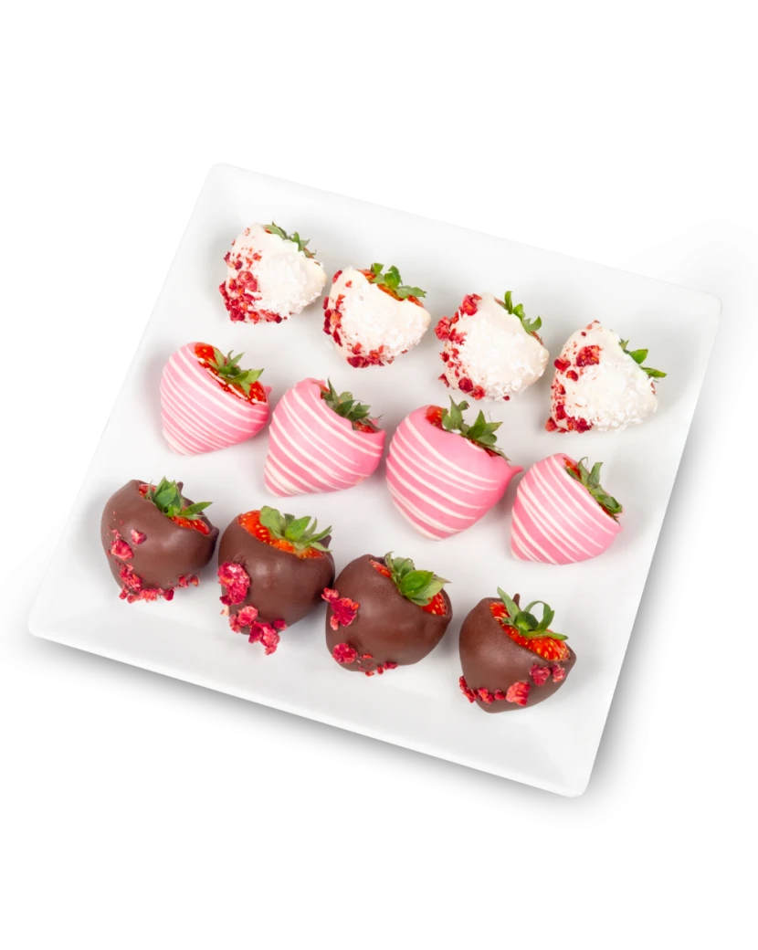 Složení: Jahody, Čokoláda, Bílá čokoláda, Tmavá čokoláda, Čokoláda jahodová, Sušené ovoce, Kokos